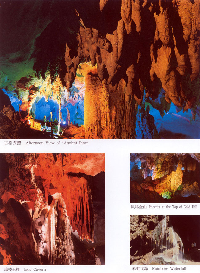 大王洞原名穿山洞,因有北汉忠佑大王刘钧庙,故名。相传刘钧兵败,曾有白犬化龙,护大王进洞避险。当地民间至今还有“白犬化龙,穿山而过”的神话传说。大王洞,很早就有人进洞游览。《贵池县志》载大王洞:北宋名臣滕宗谅、诗人梅尧臣曾偕游此洞,赋诗唱和,赞美大王洞幽、秀、神、奇。 洞内规模宏大,景色旖旎,石钟乳、石笋、石柱、石莲花等千姿百态。有高大宽敞的“迎宾殿”;有位于“金山”之巅的凤凰;有峰回路转的“长廊”等。神仙濠的溪流,从进洞口流入,穿洞而过。进洞口海拔135米,出洞口海拔65米,起伏变化大,河水落差达70米。因而洞内形成瀑布、水帘喷泉、碧潭等水景奇观。奔泻直下的飞瀑,声如雷鸣;潺潺而流的幽泉,其声淙淙。洞外有两座自然岩桥横架。一曰天桥,长40米,宽40米,高68米,桥面与公路相接,可通汽车,桥下溪水穿流,桥穹钟乳倒挂。一曰通天桥,一端连接峰巅,一端伸向洞口,气势雄伟、壮观。洞外还有浓荫密蔽的仙境幽谷,俯看溪水潺流,石阶盘旋,茂林修竹,仰望峰峦起伏,茶园梯田,白云人家。